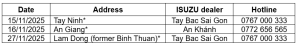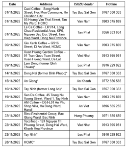 ISUZU VIETNAM TEST DRIVE & DISPLAY EVENT SCHEDULE – NOVEMBER 2025